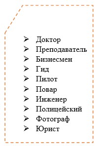 Бизнесмен, учитель, певец, повар, космонавт, журналист, гид, доктор, пилот, инженер